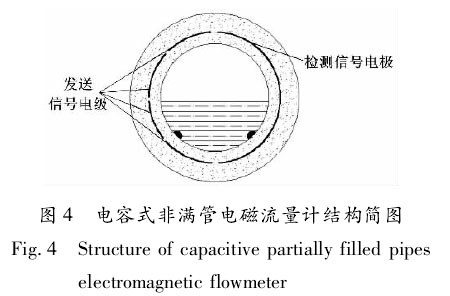 ②電容式非滿管生活污水流量計h。電容式非滿管生活污水流量計結構簡圖如圖4所示。、檢測信號電極 發(fā)送信號電
