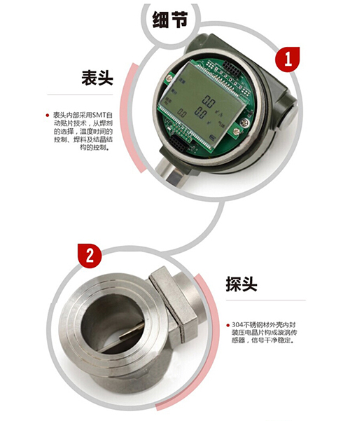 壓力損失小,量程范圍大,精度高,在測量工況體積流量時幾乎不受流體密度、壓力、溫度、粘度等參數(shù)的影響。無可動機(jī)械零件,因此可靠性高,維護(hù)量小。采用壓電應(yīng)力式傳感器,儀表參數(shù)能長期穩(wěn)定,可在-20℃~+250℃的工作溫度范圍內(nèi)工作。有模擬標(biāo)準(zhǔn)信號,也有數(shù)字脈沖信號輸出,容易與計(jì)算機(jī)等數(shù)字系統(tǒng)配套使用,是一種比較先進(jìn)、理想的流量儀表