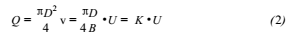 式(1)說明,導體在磁場內作切割磁力線運動,導體兩端產生的感應電動勢的大小與磁感應強度B成正比,與導體的長度D成正比,與導體運動的速度v成正比。由式(2)可知液體的體積流量與感應電動勢成正比,這就是污水流量計生產廠家的設計原理。