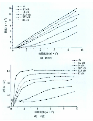 圖1甲醇介質(zhì)流量計(jì)對(duì)不同茹度條件的響應(yīng)轉(zhuǎn)速圖和K值