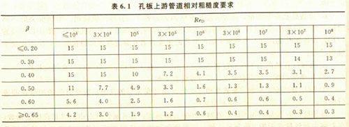 表6.1列出了天燃氣流量計上游管道相對粗糙度的上限值,單位是10'Ra/D,其中,Ra為偏離被測輪廓平均線的算術平均偏差。