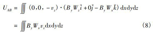 式中V為電磁污水流量計傳感器測量空間;W→為權函數。在直角坐標系(x,y,z)中,式(5)可以轉換為