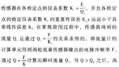 在QQmax,即在測量范圍之外誤差將超過δmax。這就是說雖然渦輪流量傳感器具有很好的重復性,但是由于電脈沖信號頻率F與體積流量Q之間是非線性的,按照常規的平均儀表系數`K的計算方法,對于一定的誤差限士A,由于非線性誤差的存在使得渦輪流量傳感器的工作范圍只能限定在Qmin~Qmax之內。