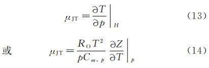 式中:T--絕對(熱力學)溫度;p--流經管道的流體靜壓;H--焓;RO--通用氣體常數;Cm,p--定壓摩爾比熱容;Z--壓縮系數。