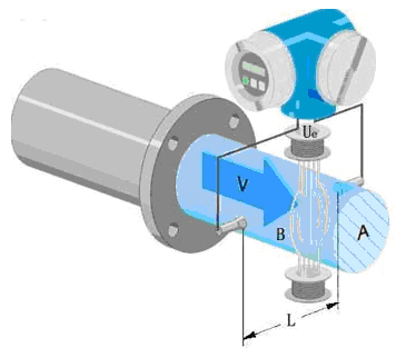 由上式可見,體積流量qv與感應電動勢e和測量管內徑D成線性關系,與磁場的磁感應強度B成反比,與其它物理參數無關.這就是污水計量表的測量原理.