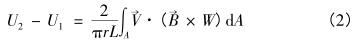 式中,U2-U1是兩電極的電勢差;A表示對所有空間積分;L為絕緣管道筒長一半;r為流量計截面管半徑;矢量珗B是導電流體的流速;B是磁感應強度;W為矢量權重函數,它是一個只由井水流量計本身結構決定的量。由(2)式可知,只要確定了流體的流速V、磁感應強度B、以及權重函數W,以及流量計管徑半徑,就可以求流量計的感應電勢差。